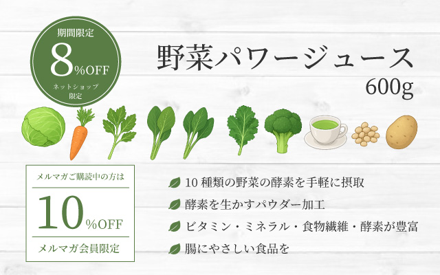 【メルマガ限定】野菜パワージュース今だけ10%OFF!