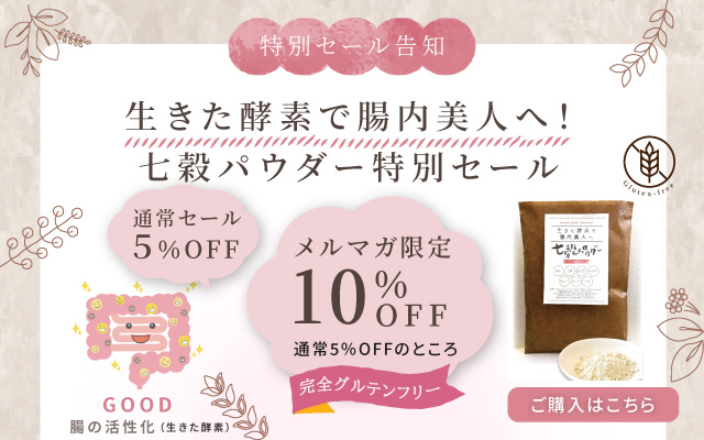 「腸内美人」を叶える生きた酵素。七穀パウダー特別セール開催!