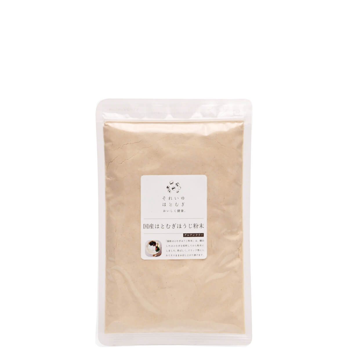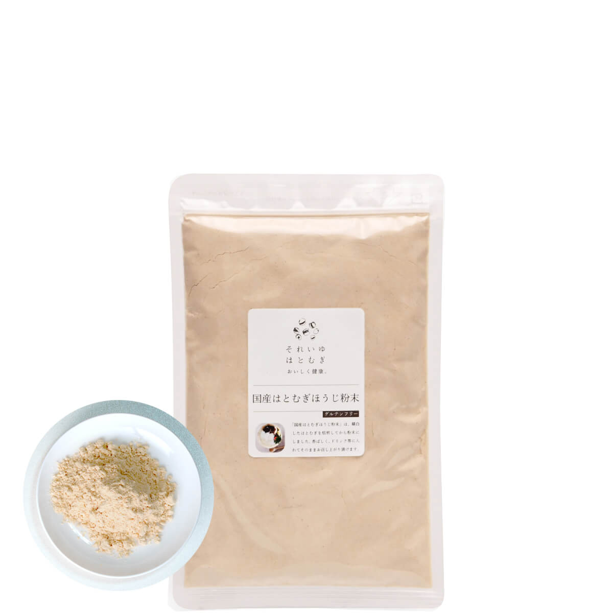 「国産はとむぎほうじ粉末」は精白したはとむぎを丁寧に焙煎してから粉末にしました。